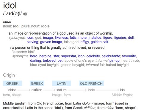What Does Idole Mean. Web idol definition, an image or other material object representing a deity to which religious worship is addressed. This sense of idol and its related terms are typically.