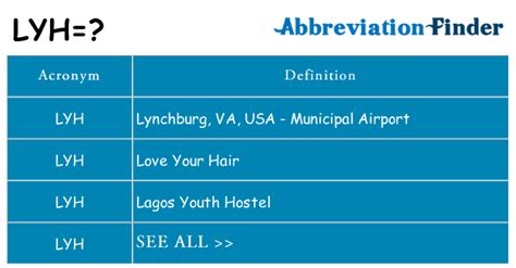 What Does Lyh Stand For. Love your hair (hair salon) note: The acronyms section of this website is powered by the acronym finder, the web's most comprehensive dictionary of acronyms, abbreviations.