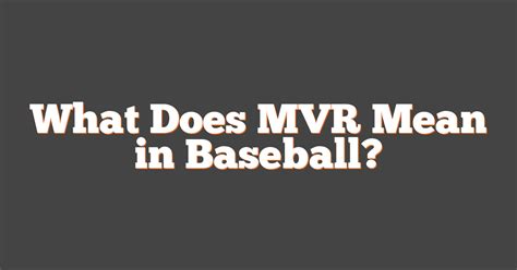 What Does Mvr Stand For In Major League Baseball? DNA Of SPORTS