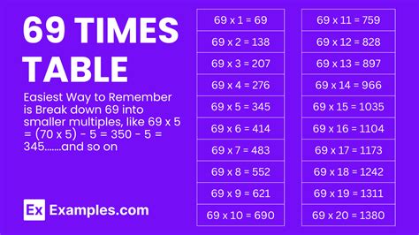 Table of 69 Learn 69 Times Table Multiplication Table of 69